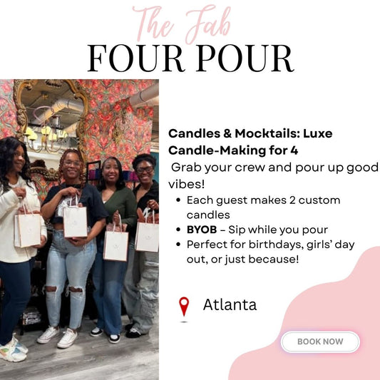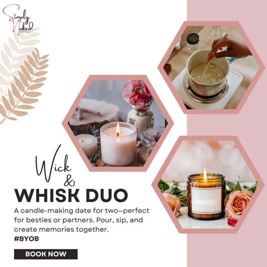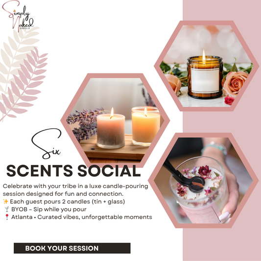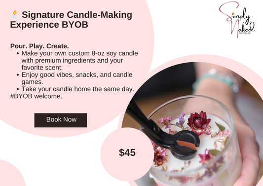 Pour, blend, and create your own signature scent at Simply Naked Candle Co in Atlanta. Our hands-on candle-making sessions are designed to spark creativity and connection. You'll choose from over 100 fragrance options, select your vessel, and craft a custom soy wax candle to take home. Whether it's a date night, solo treat, or group outing, our studio offers a fun and relaxing space to unwind and create something beautiful.